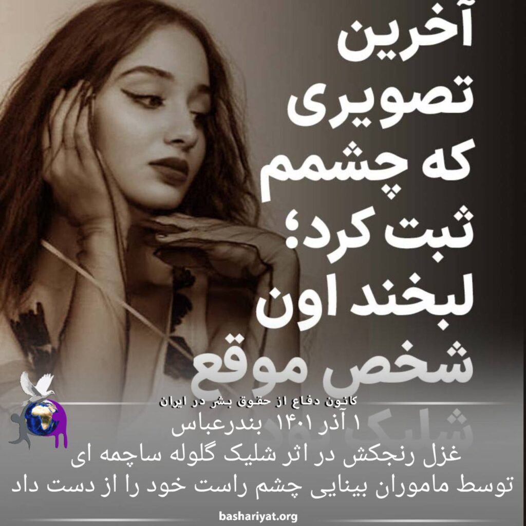 غزل رنجکش چشم راست خود را از دست داد بر اثر اصابت گلوله ساچمه ایی توسط ماموران