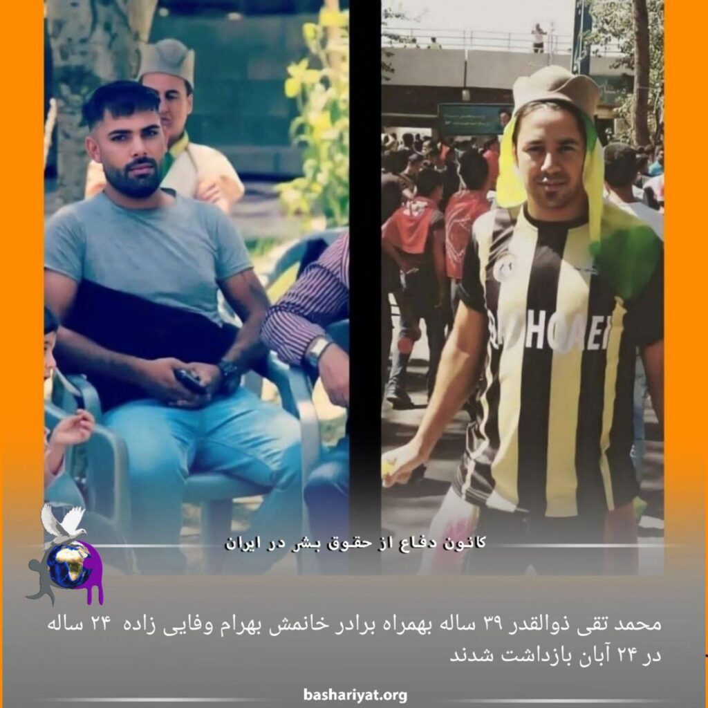 #محمدتقی_ذوالقدر ۳۹ ساله، به همراه برادر خانمش، #بهرام_وفایی‌زاده (کیانی) ۲۴ ساله، در تاریخ ۲۴ آبان، ساعت ۳ بامداد با ضرب و شتم در خانه محمدتقی بازداشت شدند.