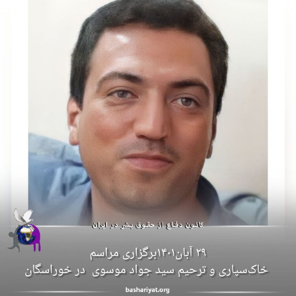 #سید_جواد_موسوی، اهل خوراسگان #اصفهان در تاریخ ۲۷ آبان با شلیک، از فاصله یک متری به صورتش توسط نیروهای سرکوبگر به قتل رسید و پیکرش را در کانال آب سمسور رها کردند.مراسم خاکسپاری و ترحیم #سید_جواد_موسوی