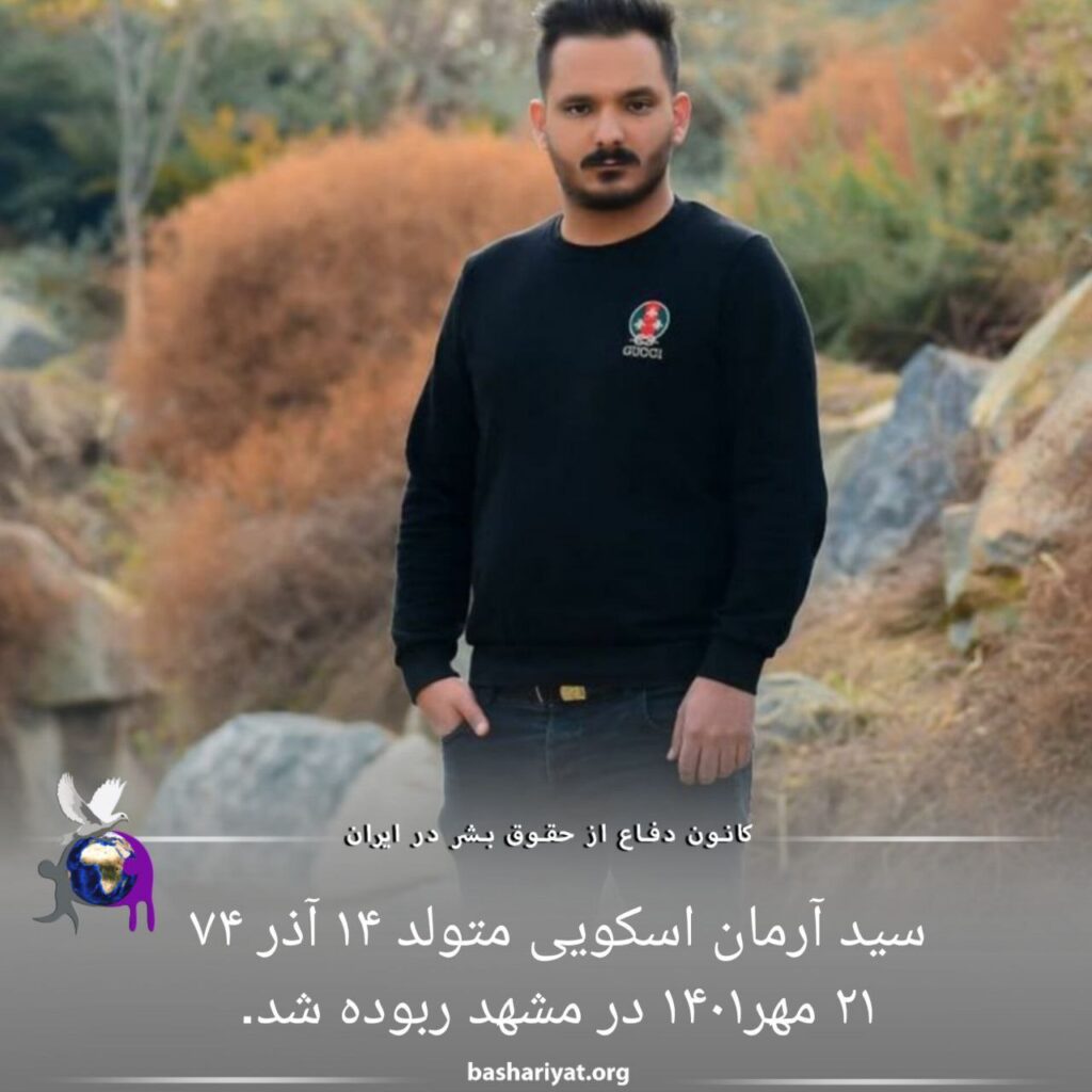#سیدآرمان_اسکویی ۲۱ مهر۱۴۰۱ در #مشهد ربوده شد. هیچ صدایی ندارد و پوشش داده نشده