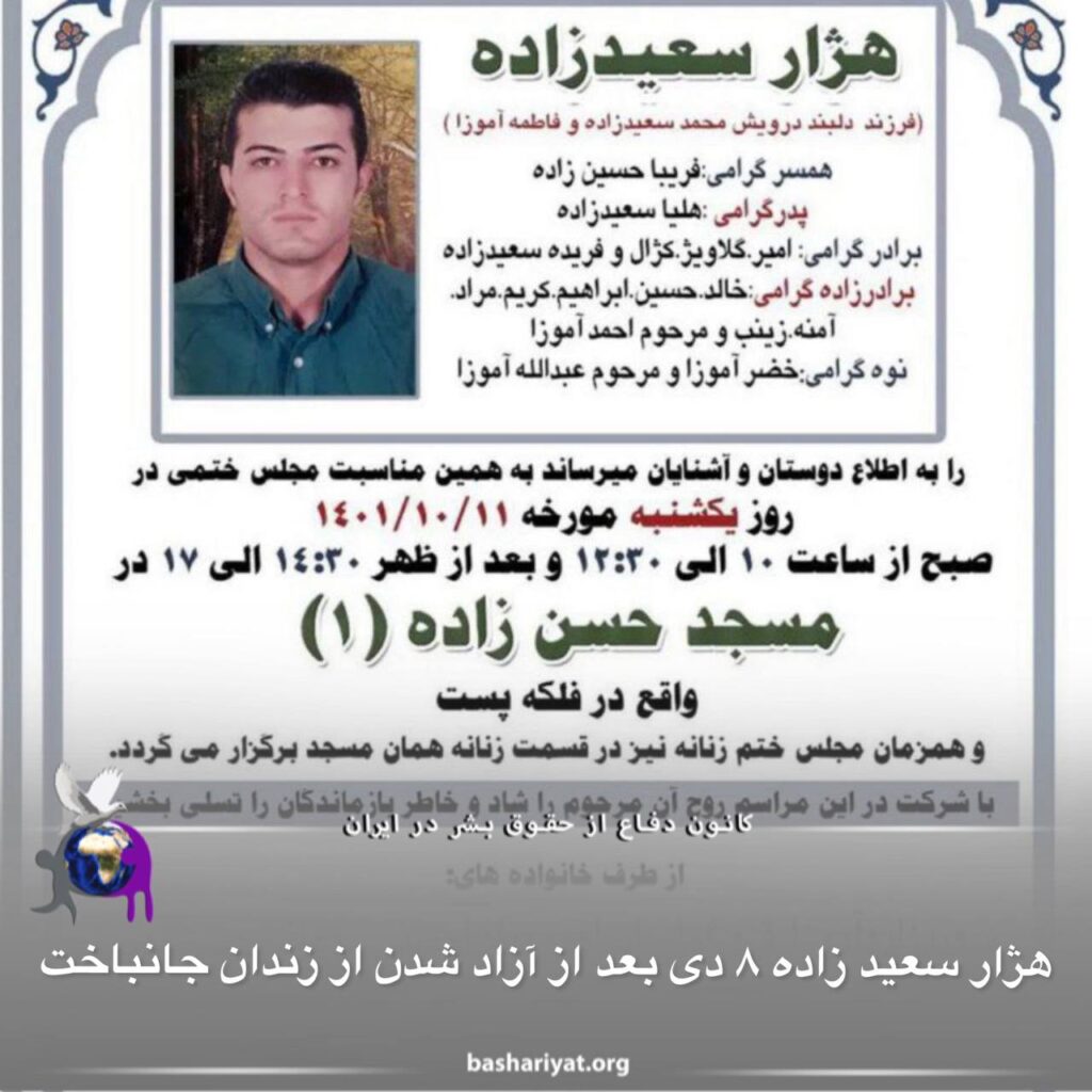 هژارسعیدزاده ۸ دی بعد از آزاد شدن از زندان جانباخت