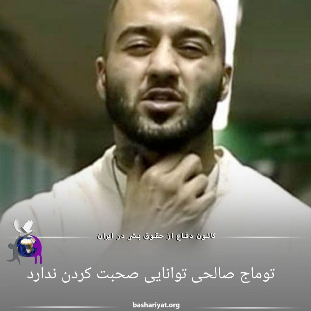 توماج صالحی دستگیر و شکنجه شده است و حدود یک هفته است که توانایی صحبت کردن، نوشیدن و غذا خوردن ندارد.