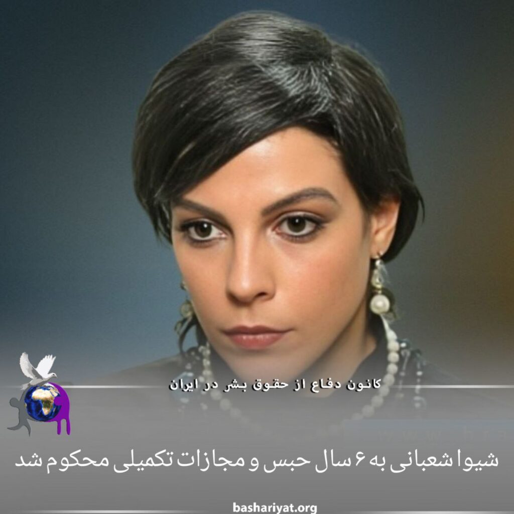 #شیوا_شعبانی، بازیگر تئاتر و سینما، توسط شعبه ۱۵ دادگاه انقلاب #تهران به ۶ سال حبس و مجازات تکمیلی محکوم شد. در صورت تایید این حکم در مرحله تجدید نظر، با اعمال ماده ۱۳۴ قانون مجازات اسلامی، مجازات اشد یعنی ۵ سال حبس در خصوص وی قابل اجرا خواهد بود.