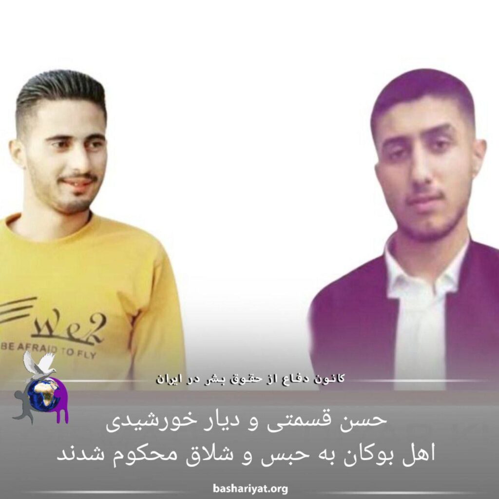 حسن قسمتی و دیار خورشیدی اهل بوکان که در جریان خیزش و مقاومت مردمی اخیر بازداشت شده بودند،به حبس و شلاق محکوم شدند.