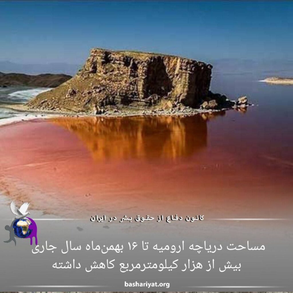 آرزو اشرفیزاده، مدیرکل دفتر حفاظت و احیای تالابهای سازمان حفاظت محیط زیست، گفت:«مساحت دریاچه ارومیه تا ۱۶ بهمنماه سال جاری بیش از هزار کیلومترمربع کاهش داشته است.»