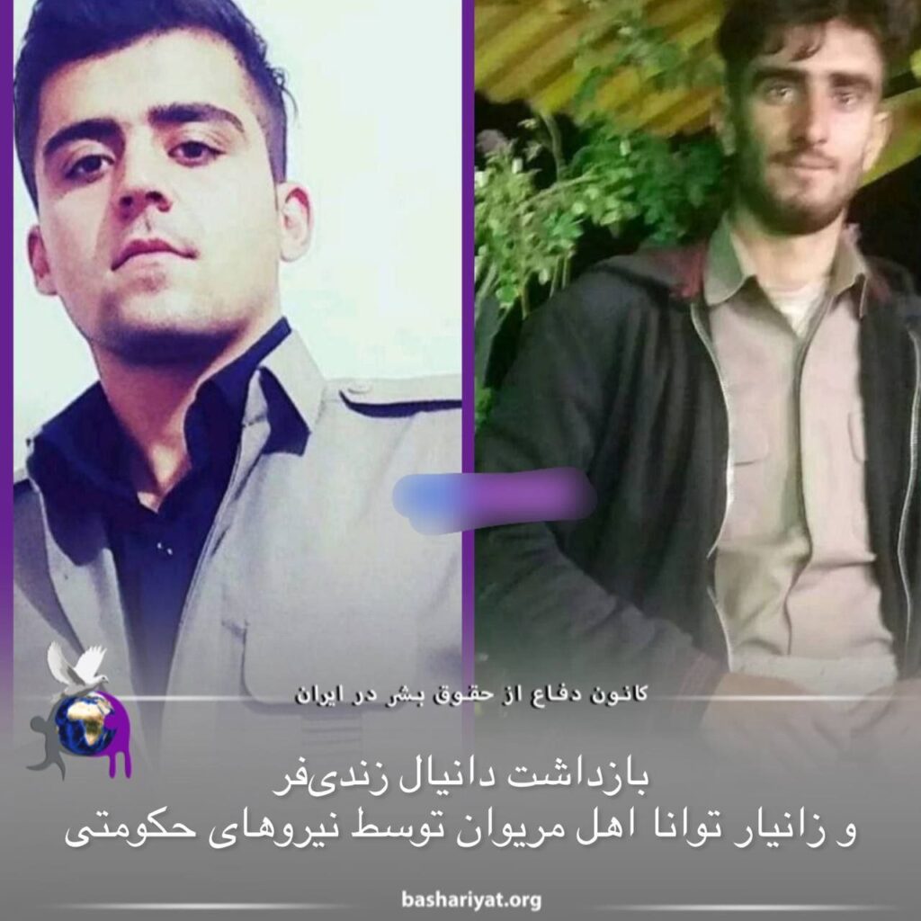 دانیال زندیفر ۲۰ ساله و زانیار توانا ۲۵ ساله اهل روستای سردوش از توابع شهر مریوان در جریان دستگیریهای گسترده اخیر روز دوشنبه ۲۴ بهمنماه ۱۴۰۱ توسط مامورانحکومتی در شهر مریوان بازداشت و به مکان نامعلومی منتقل شدهاند.