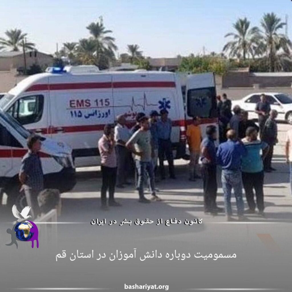 این دانش‌آموزان با علائم تنفسی و سوزش گلو و حالت تهوع به بیمارستان منتقل شدند.این چندمین بار است که مسمومیت دانش‌آموزان در #قم خبرساز شده است. ۹ آذرماه نقطه شروع این ماجرا بود. و این در حالی است که وزیر آموزش و پرورش ایران روز ۲۶ بهمن اخبار مربوط به این موضوع را «شایعه» خواند.