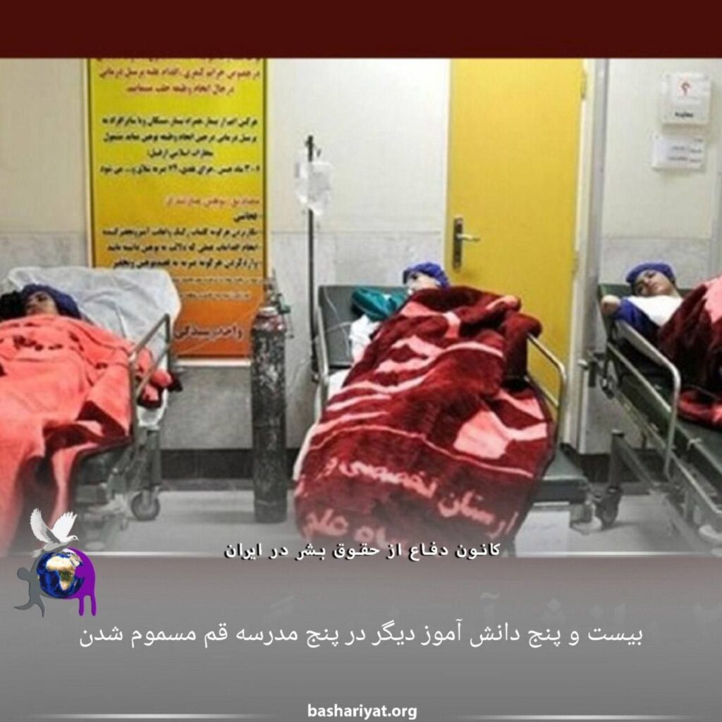 بر اساس اعلام دانشگاه علوم پزشکی قم، ۲۵ دانشآموز دیگر در پنج مدرسه قم مسموم و راهی مراکز درمانی شدند.