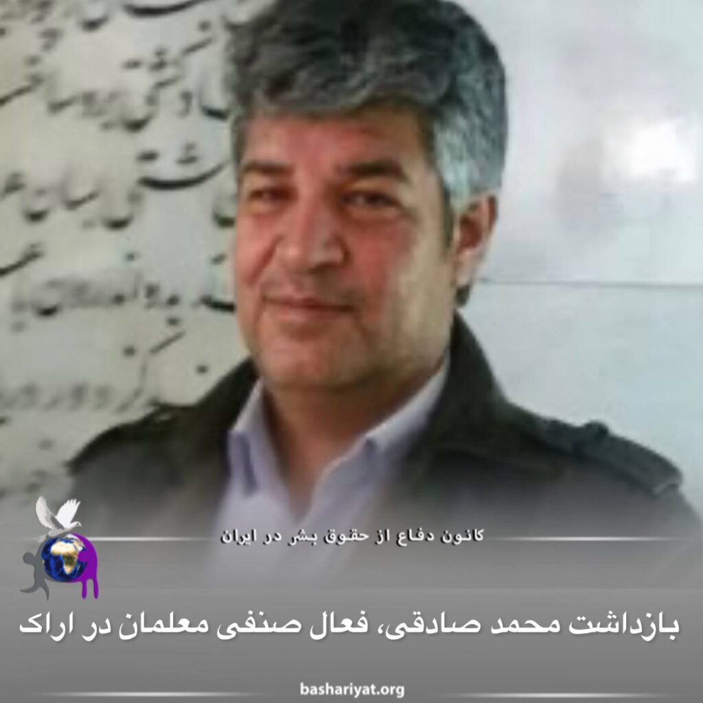 روز پنجشنبه ۱۸ اسفند ماه، #محمدصادقی، معلم بازنشسته و فعال صنفی معلمان توسط نیروهای امنیتی در #اراک بازداشت و به بازداشتگاه پلیس امنیت این شهر منتقل شد.