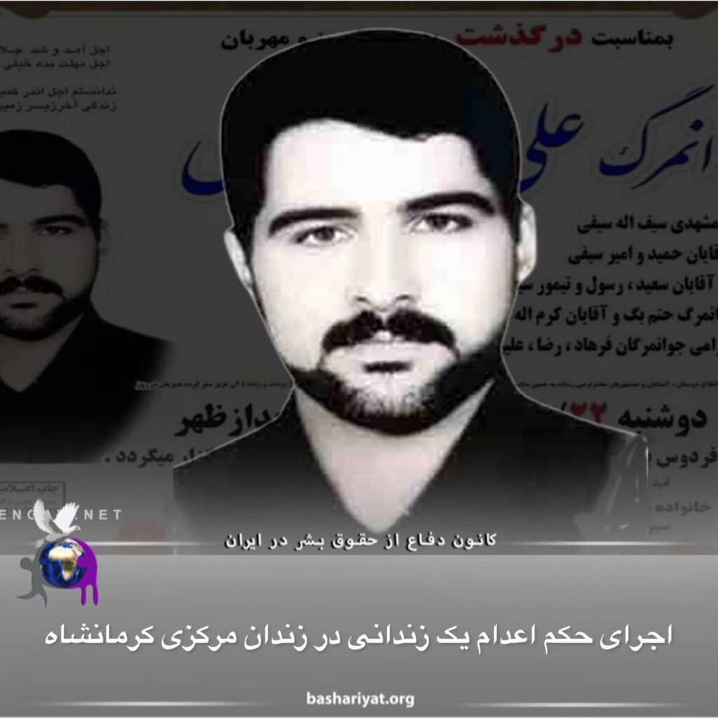 روز یکشنبه ۲۱ اسفند ۱۴۰۱ ( ۱۲ مارس ۲۰۲۳)، حکم اعدام #علی_مخان_سیفی ۳۵ ساله و شهروند اهل کرمانشاه که پیشتر از بابت قتل عمد به اعدام محکوم شده بود، در زندان دیزلآباد این شهر اجرا شد.وی حدوداً دو سال پیش به اتهام قتل عمد همسرش بازداشت و توسط دستگاه قضایی جمهوری اسلامی ایران به اعدام محکوم شده بود. وی پدر دو فرزند نیز بود.تا زمان تنظیم این خبر، خبر اعدام این شهروند کُرد در رسانههای حکومتی و به ویژه قوه قضاییه اعلان نشده است.