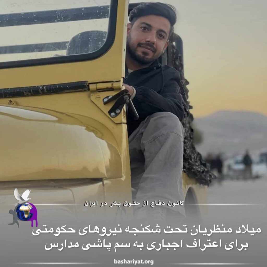 میلاد نظریان تحت شکنجه نیروهای حکومتی برای اعتراف اجباری به سم پاشی مدارس