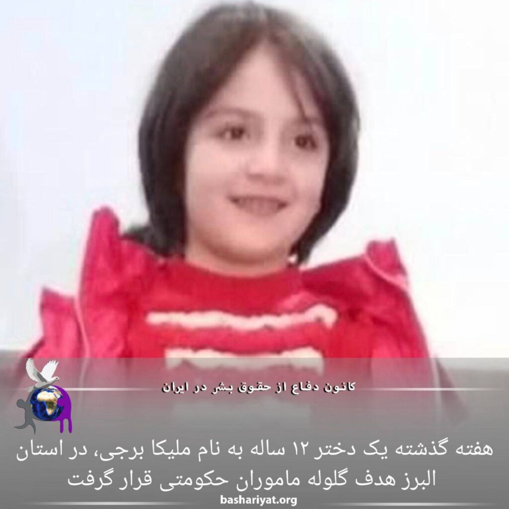 هفته گذشته یک دختر ۱۲ ساله به نام ملیکا برجی،در استان البرز هدف گلوله ماموران حکومتی قرار گرفت