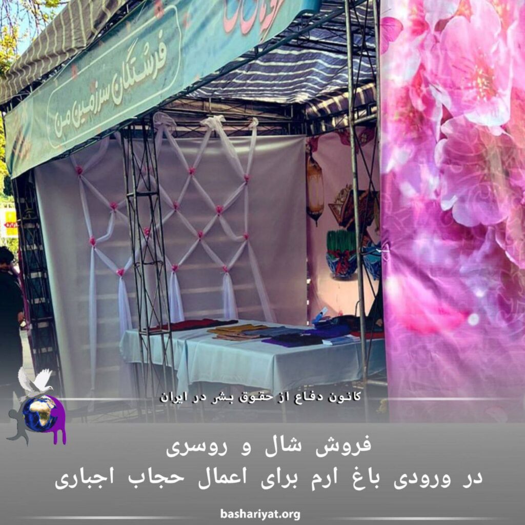در ورودی «باغ‌ارم» شیراز غرفه فروش شال و روسری بر‌‌‌پاست و از ورود هر زن و دختری که حجاب ندارد نه تنها جلوگیری می‌شود، بلکه به او گفته می‌شود از این غرفه روسری بخرد.