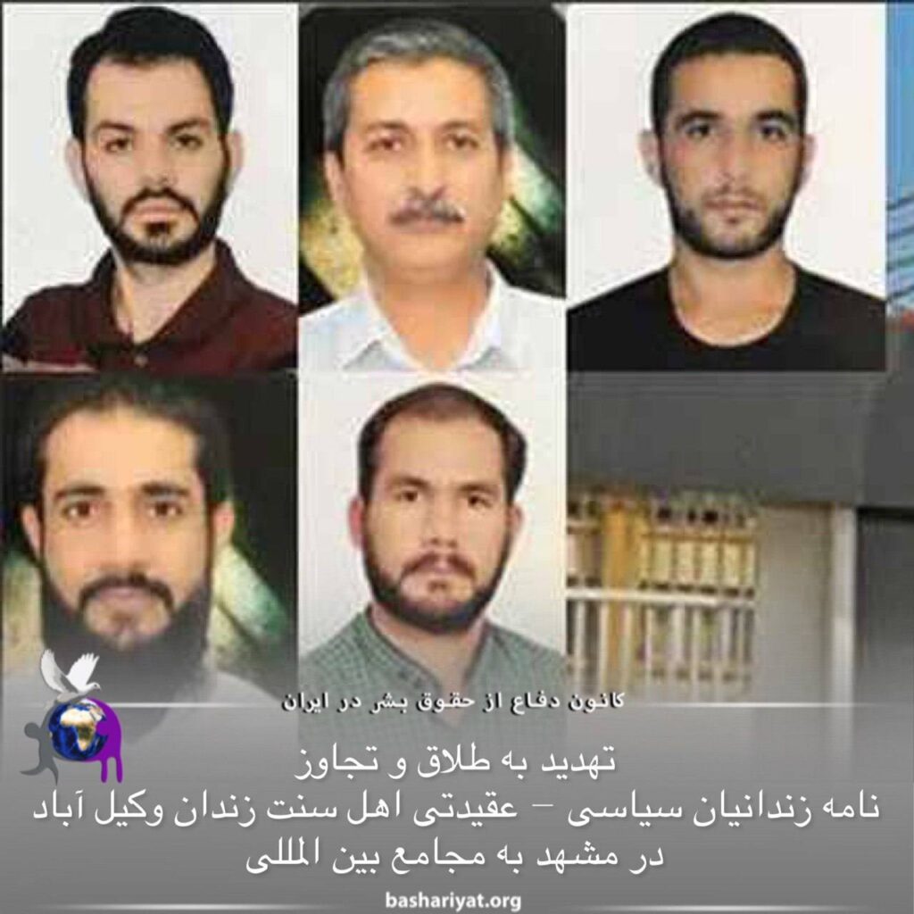 زندانیان سیاسی – عقیدتی اهل سنت زندان وکیل آباد #مشهد طی نامه سرگشاده ای به مجامع بین المللی اعلام کردند که در خطر بوده، خود و خانواده هایشان تهدید به طلاق و تجاوز شده اند.