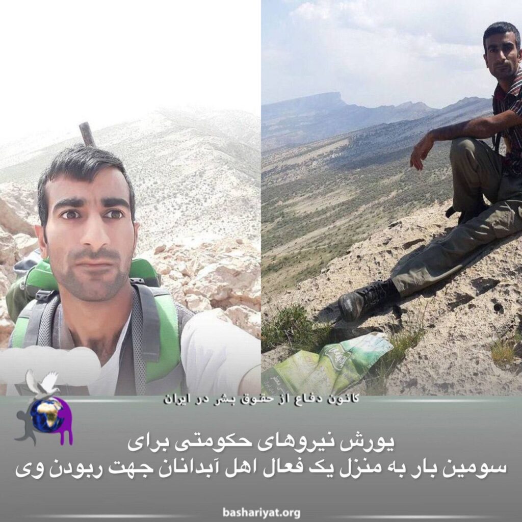 نیروهای حکومتی جهت ربودن به منزل خانوادگی یک شهروند به نام #وحید_چاوران، کوهنورد و فعال مدنی اهل شهر #سرابباغ از توابع شهرستان آبدانان حمله کردند.ورود این نیروهای حکومتی به منزل خانوادگی وحید چاروان بدون ارائه هیچگونه حکم قضایی و با ایجاد ارعاب و هراسافکنی بین اعضای خانواده وی صورت گرفته است که در نهایت موفق به ربودن آقای چاوران نیز نشدهاند.نیروهای حکومتی تاکنون در سه نوبت برای ربودن وحید چاوران اقدام کردهاند که طی یک مورد در ٢٦ بهمن ١٤٠١، متعاقب استفاده از گاز اشکآور در داخل منزل، اعضای خانواده چاوران از جمله دو خواهر وی راهی بیمارستان شدند.همچنین در یک یورش دیگر نیز، این نیروهای حکومتی به دامداری متعلق به یاور چاوران، پدر وحید چاوران یورش بردهاند.