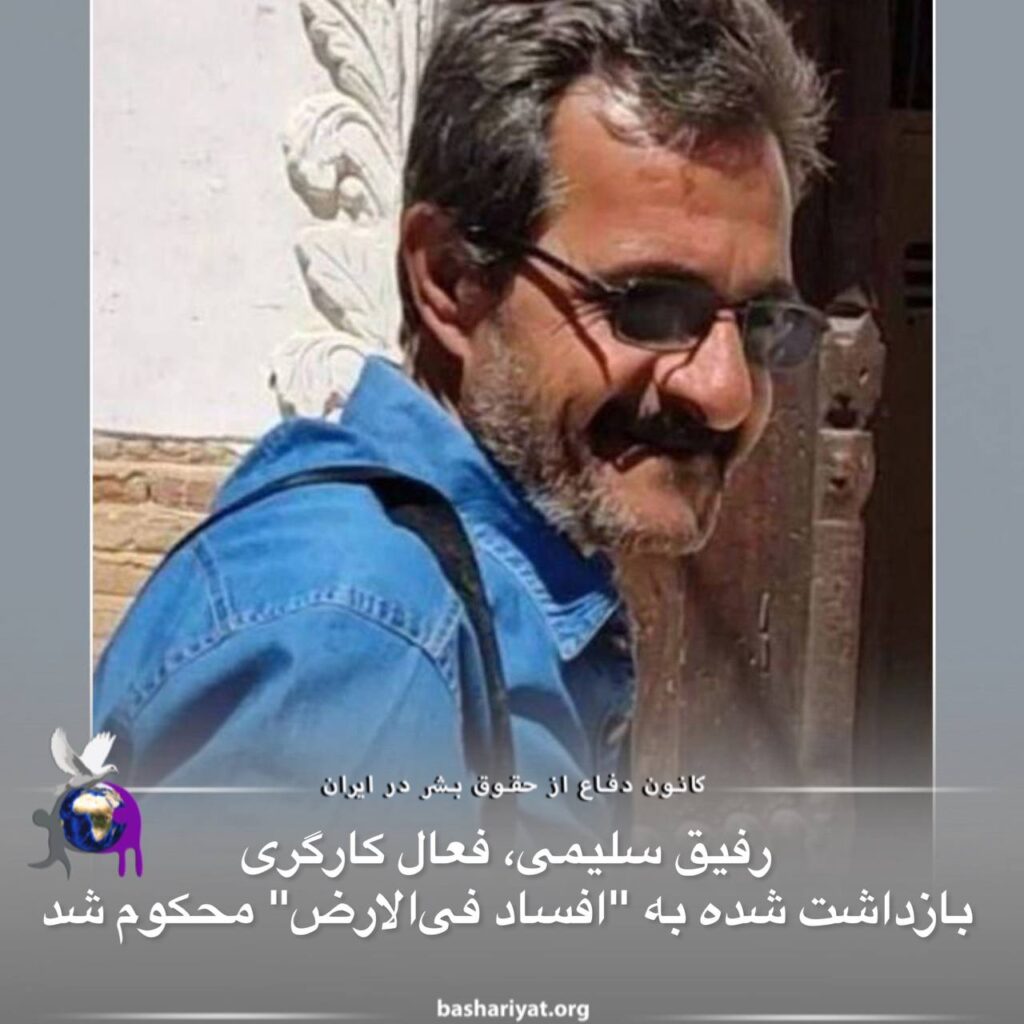 یکشنبه ٢٧ فروردین ١٤٠٢ (١٦ آوریل ٢٠٢٣) رفیق سلیمی فعال کارگری در جلسه نخستین دادگاه انقلاب با اتهامات “ایجاد گروه های غیر قانونی و اقدام علیه امنیت ملی کشور” به “افساد فی الارض” محکوم شد.آقای سلیمی اتهامات مطروحه علیه خود را رد کرده است.رفیق سلیمی، در روز دوشنبه ٧ آذر ماه ۱۴۰۱، به همراه فرزند خود، فواد سلیمی توسط نیروهای حکومتی بازداشت شد. وی روز یکشنبه ١٨ دی ماه سال گذشته با وثیقه و موقتاً تا پایان مراحل دادرسی آزاد شده بود.