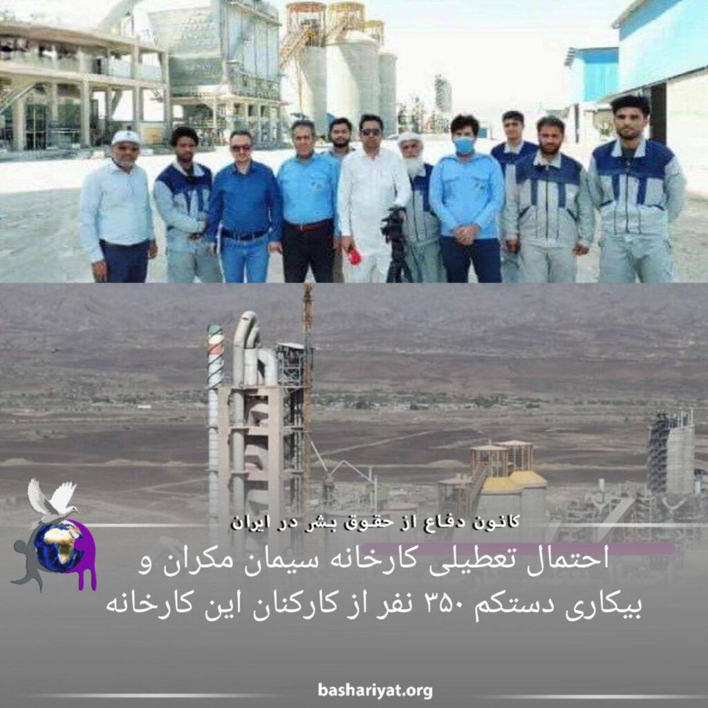 عدم تخصیص سوخت مازوت به کارخانه سیمان مکران (تیس) احتمال تعطیلی این کارخانه را در پی خواهد داشت که دست کم ٣۵٠ کارگر شغل خود را از دست خواهند داد.
