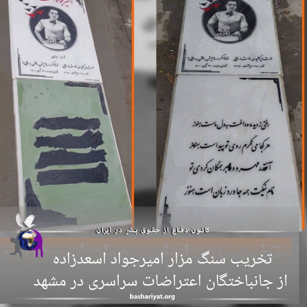 تخریب سنگ مزار امیرجواد اسعدزاده از جانباختگان اعتراضات سراسری در مشهد