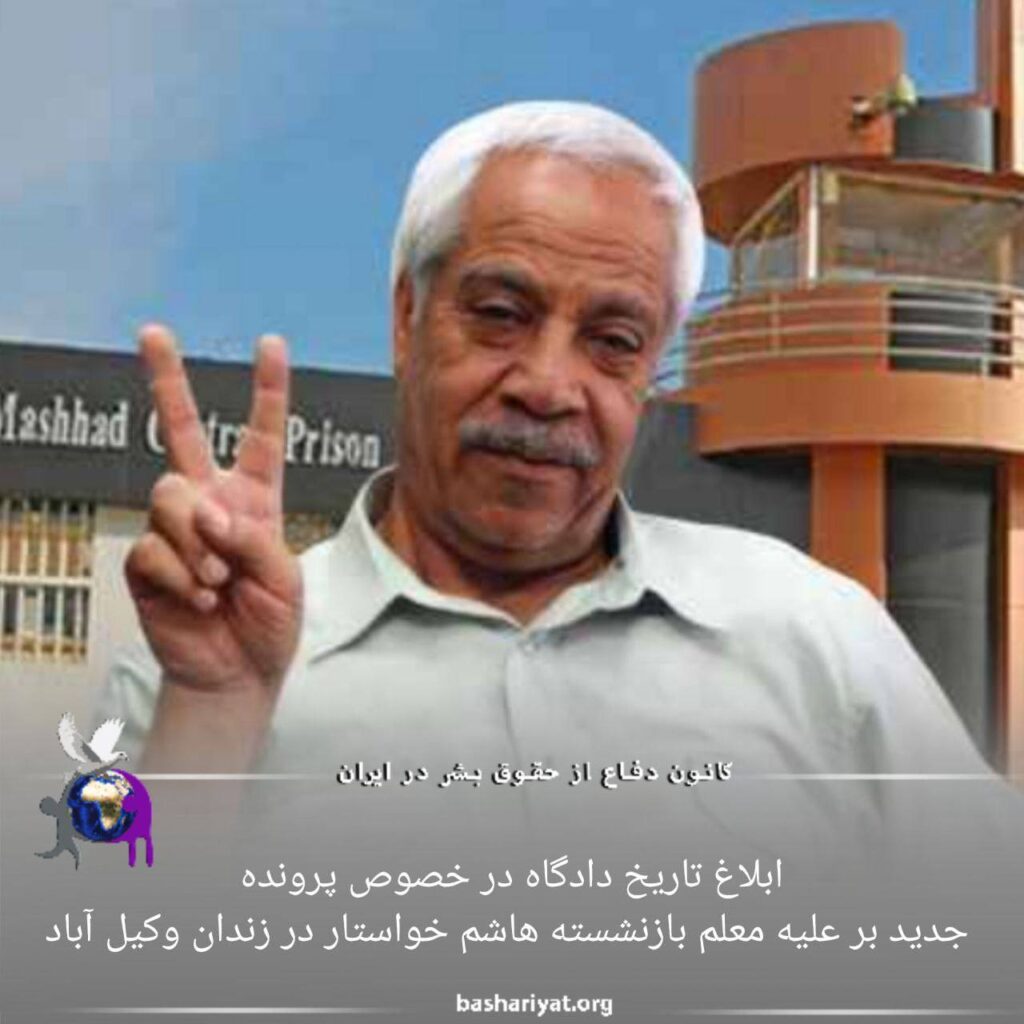 ابلاغ تاریخ دادگاه در خصوص پرونده جدید بر علیه معلم بازنشسته هاشم خواستار در زندان وکیل آباد