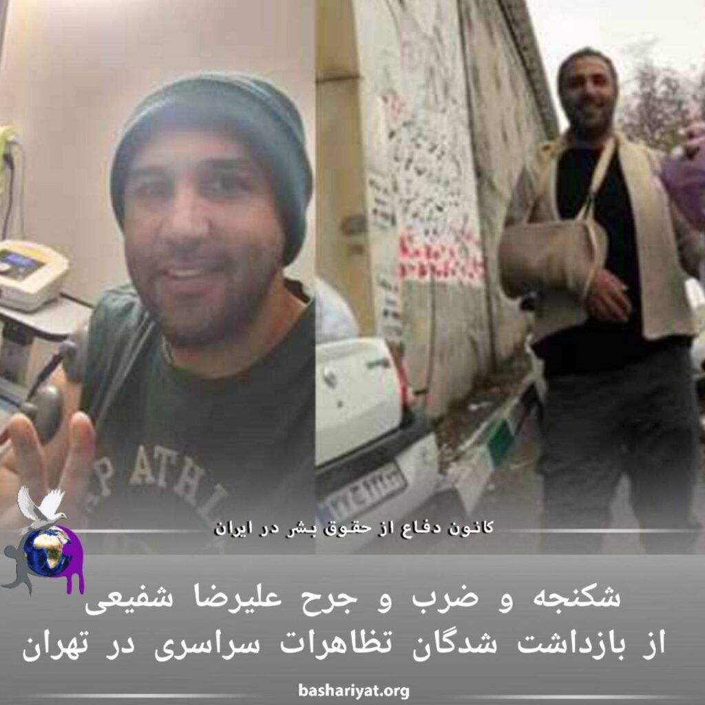 #علیرضا_شفیعی دانشجوی ارشد دانشگاه خوارزمی، از بازداشت شدگان تظاهرات سراسری در #تهران است که بر اثر ضرب و جرح و شکنجه شدید دچار آسیب دیدگی شدید از ناحیه دنده ها و دست و پا شده است.#علیرضا_شفیعی دانشجوی ارشد دانشگاه خوارزمی #تهران، ۳۸ ساله، مجرد و ساکن #تهران است. او در آبانماه ۱۴۰۱، در رابطه با اعتراضات سراسری دستگیر و در ۲۵ بهمن ماه همان سال با قرار وثیقه آزاد شد.