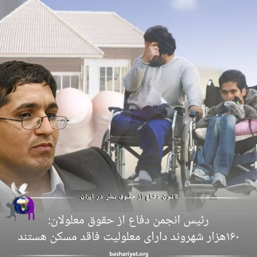 رئیس انجمن دفاع از حقوق معلولان ضمن بیان اینکه “۱۶۰ هزار شهروند دارای معلولیت از داشتن سرپناه و حق مسکن در کشور محروم هستند”، گفت: “طی جلسه ای تنها اعلام شد که قرار است به معلولان خانه داده شود و مشخص نشده که این اقدام توسط کدام نهاد صورت می گیرد.”علی همت محمود نژاد ادامه داد: “همین جلسه سال گذشته نیز برگزار شد و اگر بررسی کنیم متوجه می شویم که ۲۰ درصد مصوبات جلسه هم انجام نشده است.