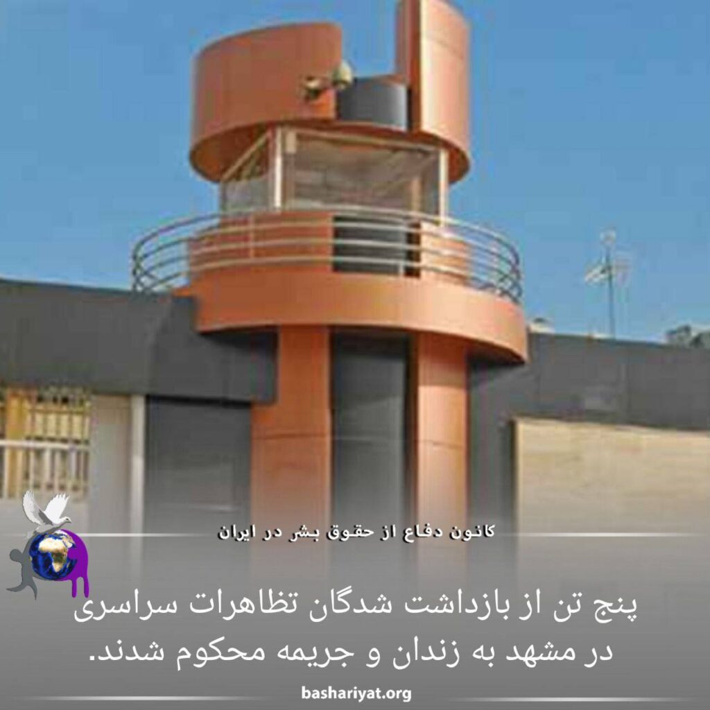 پنج تن از بازداشت‌شدگان تظاهرات سراسری در مشهد به جریمه و حبس محکوم شدند