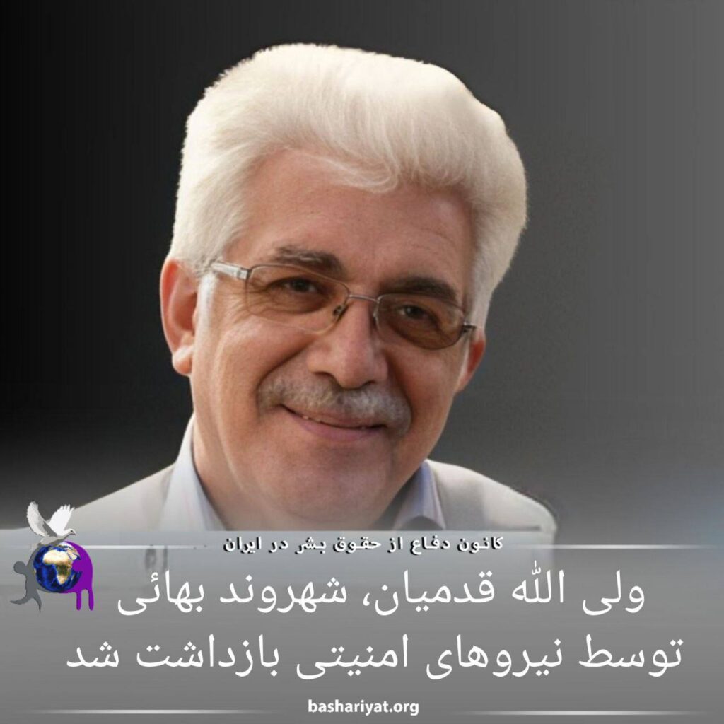 ۱۱اردیبهشت ۱۴۰۲ #ولی_الله_قدمیان، شهروند #بهائی ساکن #تهران، توسط نیروهای حکومتی در منزل شخصی خود بازداشت و به مکان نامعلومی منتقل شد.