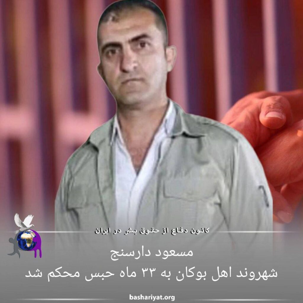 #مسعود_دارسنج ، شهروند اهل #بوکان که زمستان ۱۴۰۱ برای مدتی بازداشت و تحت بازجویی نهادهای حکومتی قرار گرفته بود، به ٣٣ ماه حبس محکوم شده است.