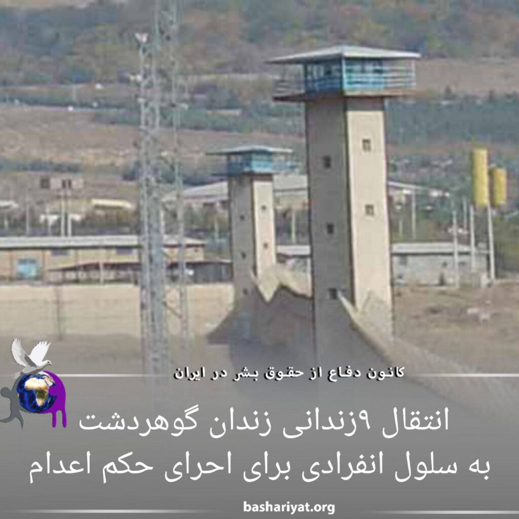 ۹ زندانی از زندانیان محکوم به اعدام در زندان گوهردشت #کرج برای اجرای حکم اعدام به سلول های انفرادی منتقل شدند. بر اساس گزارشهای رسیده، ۴ تن از این زندانیان از متهمان به محاربه هستند. از اتهام و هویت این زندانیان اطلاع دقیقی در دست نیست. یکی از زندانیان منتقل شده برای اعدام، #مسعود_سیری، ساکن #ورامین است.
