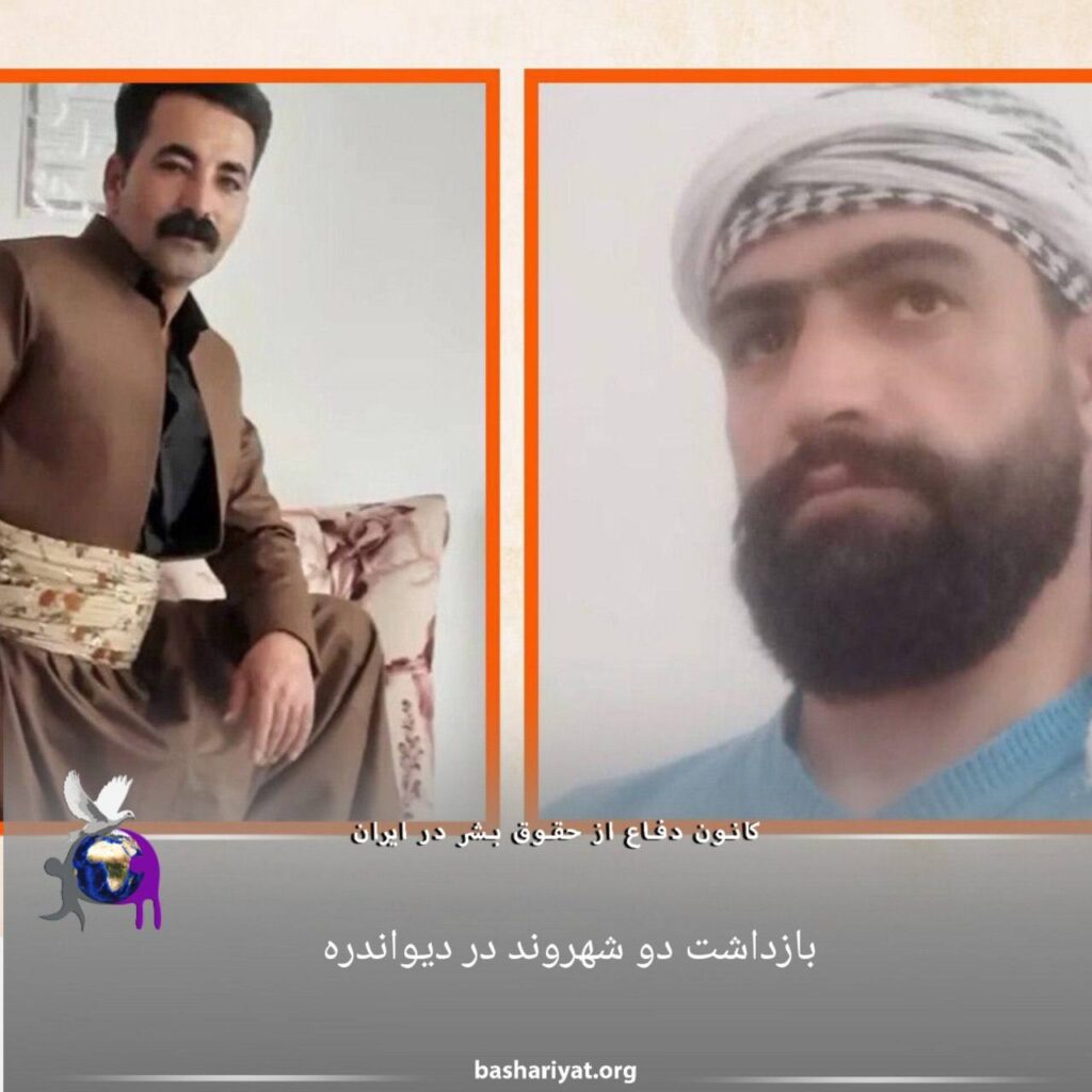 روز یکشنبە دو شهروند به نامهای #پیمان_احمدیان و #منوچهر_رضایی ساکن #دیواندرە، توسط مأمورین حکومتی این شهر «خودسرانە» و «بدون ارائە حکم قضایی» بازداشت و بە مکان نامعلومی منتقل شدەاند.