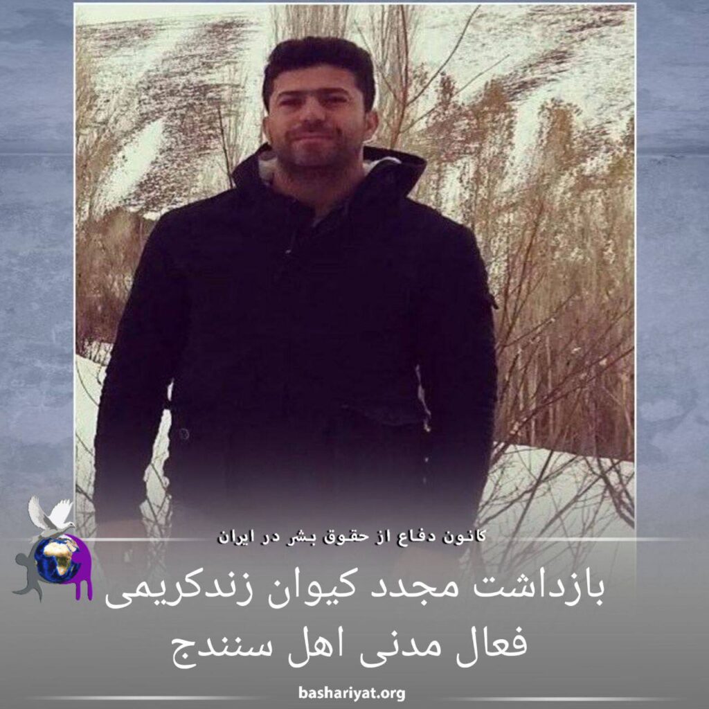 #کیوان_زندکریمی، فعال مدنی اهل #سنندج در حالی که پنج روز از آزادی موقتش گذشته بود؛ بار دیگر توسط نیروهای حکومتی بازداشت و به مکان نامعلومی شده است.