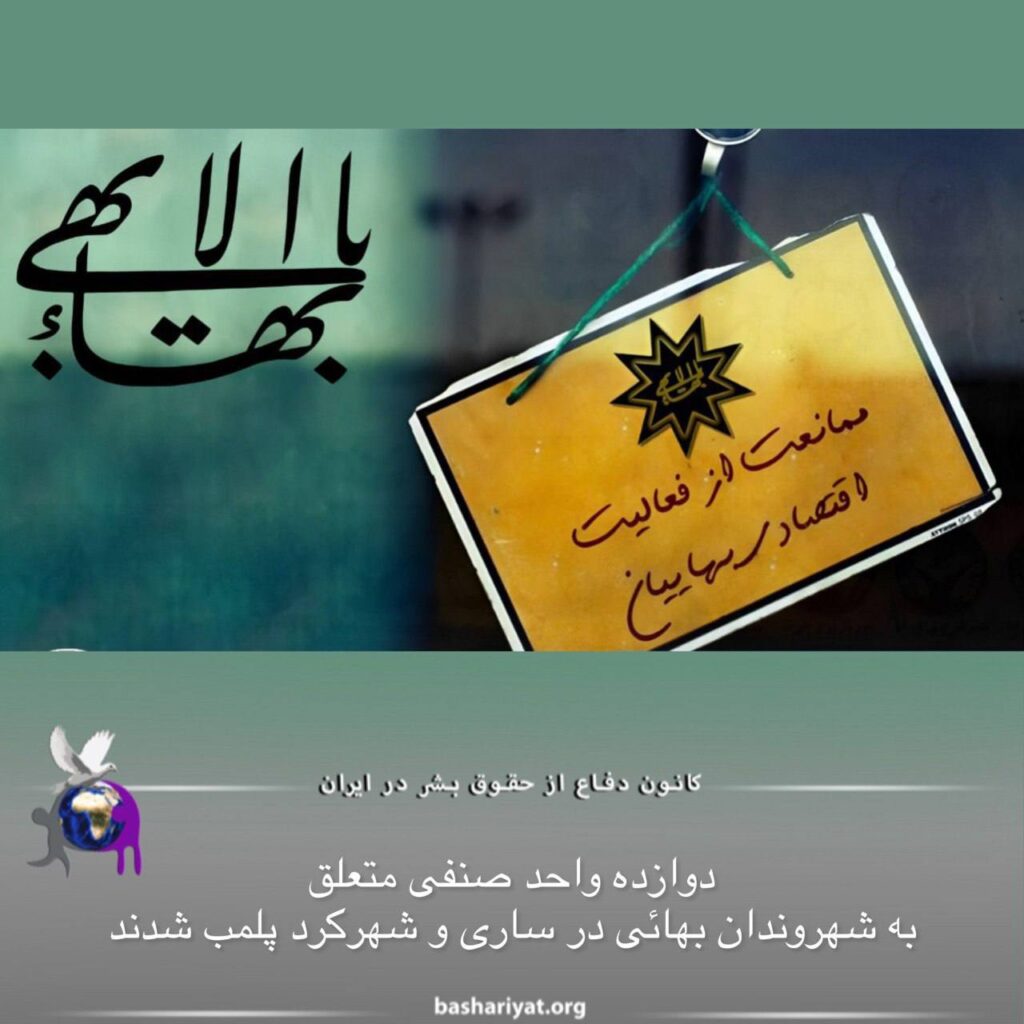 روز شنبه ۹ اردیبهشت ماه، دوازده واحد صنفی متعلق به شهروندان بهائی در شهرهای ساری و شهرکرد توسط ماموران اداره اماکن پلمب شدند. پلمب محل کسب این شهروندان به بهانه تعطیلی یکی از اعیاد بهائیان صورت گرفته است.