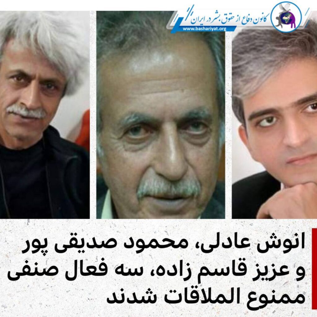 انوش عادلی،محمود صدیقی پور و عزیز قاسم زاده،سه فعال صنفی ممنوع الملاقات شدند