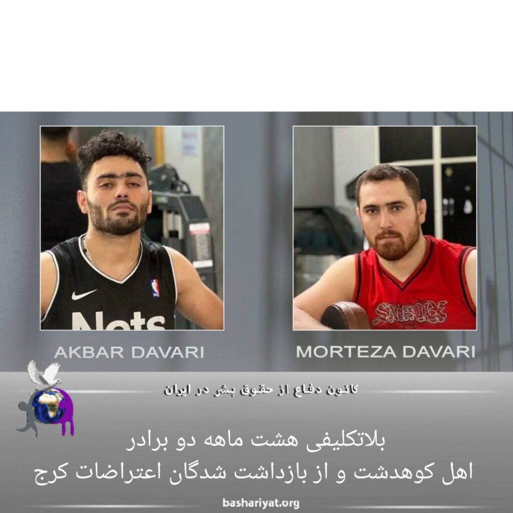 مرتضی داوری و اکبر داوری، دو برادر اهل کوهدشت از توابع استان لرستان که در جریان جنبش انقلابی “ژن، ژیان، ئازادی” در کرج بازداشت شدند، نزدیک به ٨ ماه است که بلاتکلیف در ندامتگاه مرکزی قزلحصارکرج محبوس هستند.
