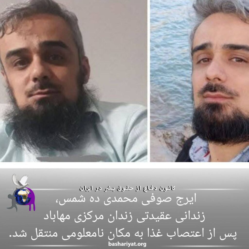 ایرج صوفی محمدی_دەشمس فرزند ابراهیم، زندانی عقیدتی-امنیتی اهل مهاباد درحالی که به صورت رای باز آزاد شده بود و مشغول کارکردن بود، روز جمعه ۱۵اردیبهشت ماه ۱۴۰۲، با دستور دادستان عمومی مهاباد بدون هیچ دلیلی دوباره به زندان مهاباد منتقل شد و در اعتراض به این انتقال دست به اعتصاب غذای خشک زده است.