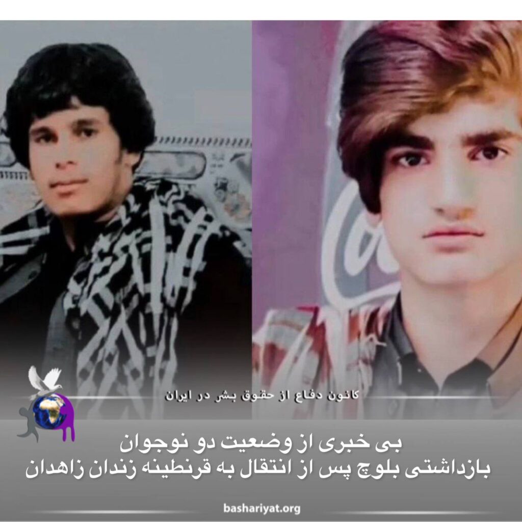 #بنیامین_کوهکن نوجوان ۱۶ ساله #بلوچ و #محمود_درویش_نارویی که در تاریخ ۱۳ دی ماه ۱۴۰۱، در بحبوحه اعتراضات سراسری در #زاهدان بازداشت شدند به مدت بیش از دو هفته است که پس از انتقال به قرنطینه زندان زاهدان دیگر خبری از آنان نیست.