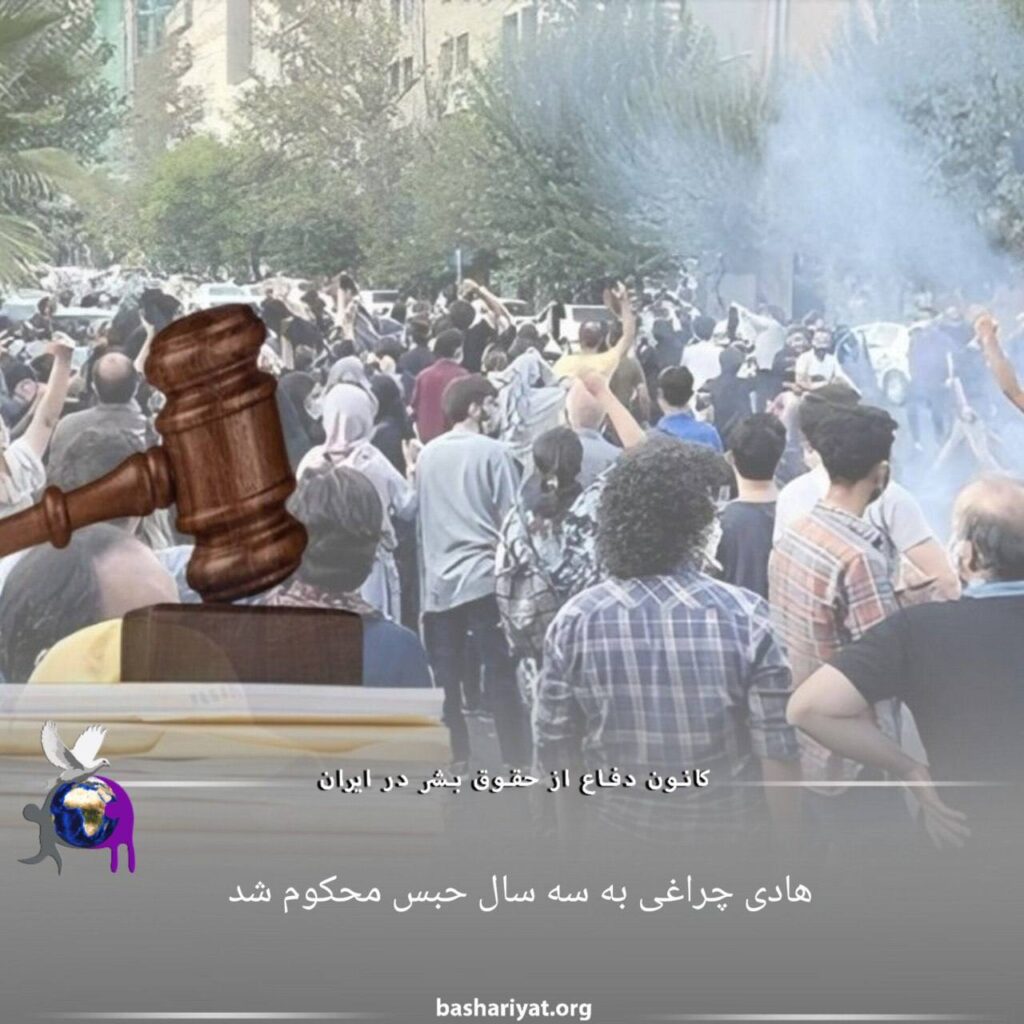 #هادی_چراغی، شهروند ساکن #تهران توسط شعبه بیست و ششم دادگاه انقلاب #تهران، به سه سال حبس محکوم شد. وی پیشتر در جریان اعتراضات سراسری سال گذشته توسط مأمورین حکومتی در #تهران بازداشت و نهایتا پس از پایان مراحل بازجویی به #زندان_تهران_بزرگ منتقل شده بود.