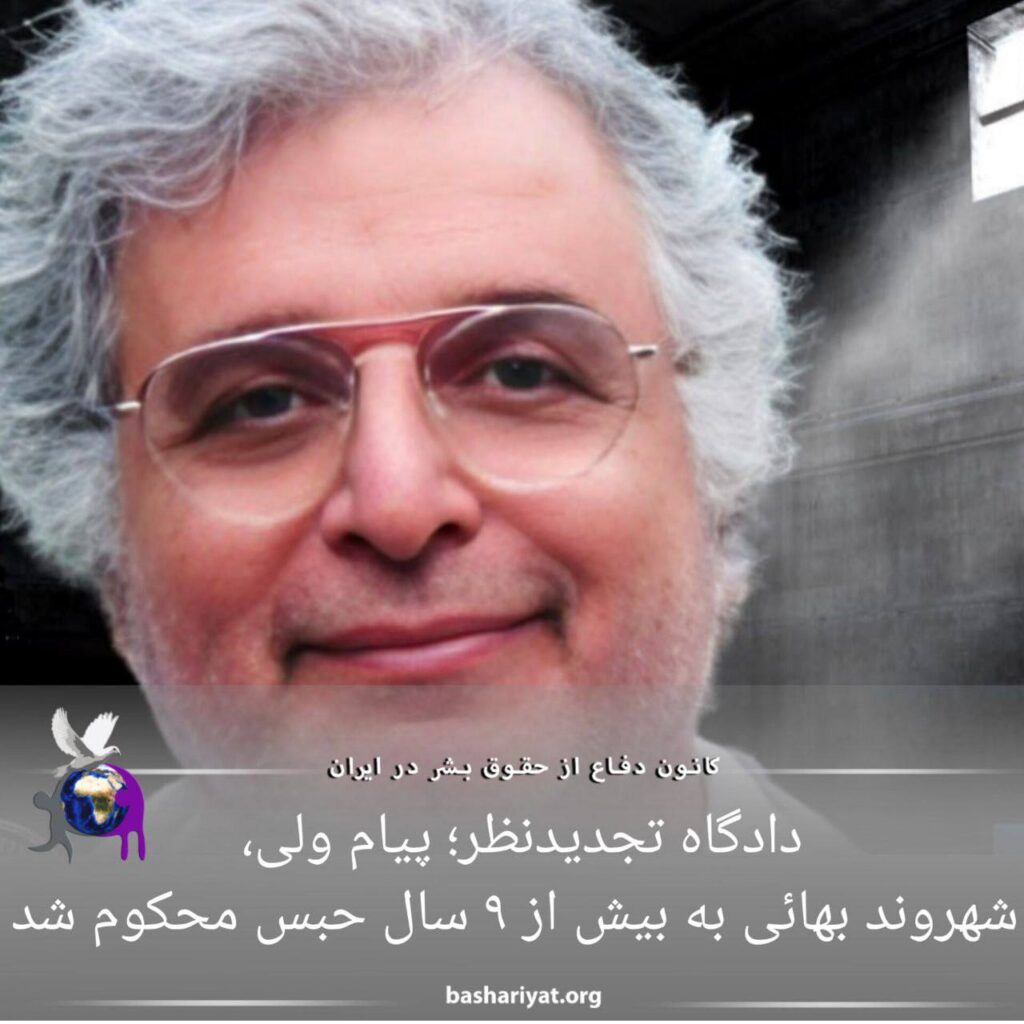 محکومیت #پیام_ولی، شهروند #بهائی محبوس در #زندان_قزلحصار_کرج توسط دادگاه تجدیدنظر استان #البرز به ۹ سال و ۹ ماه حبس کاهش یافت. با اعمال ماده ۱۳۴ قانون مجازات اسلامی، مجازات اشد یعنی شش سال حبس برای او قابل اجرا خواهد بود.