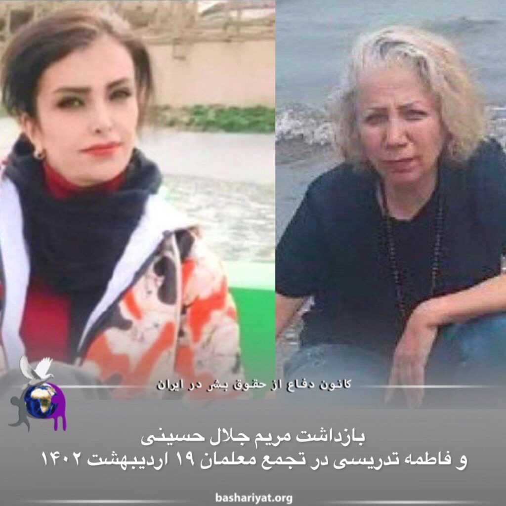 #مریم_جلال_حسینی، که روز نوزدهم اردیبهشت در تجمع معلمان در تهران دستگیر شد و «#فاطمه_تدریسی» معلمی که در همین روز در میدان بهارستان دستگیر شده بود، هر دو به #زندان_قرچک منتقل شده اند. در هنگام رسیدگی به پرونده آنها، با قرار وثیقه برای آزادی موقت، مخالفت شده است. این دو فعال مدنی آزادیخواه، که پیش از این نیز سابقه دستگیری و زندانی شدن داشتهاند، توسط مسئولین زندان، به بند متهمین به قتل منتقل شده اند. جان و سلامتی هردوی این بازداشت شده ها حالا در خطر جدی قرار دارد.