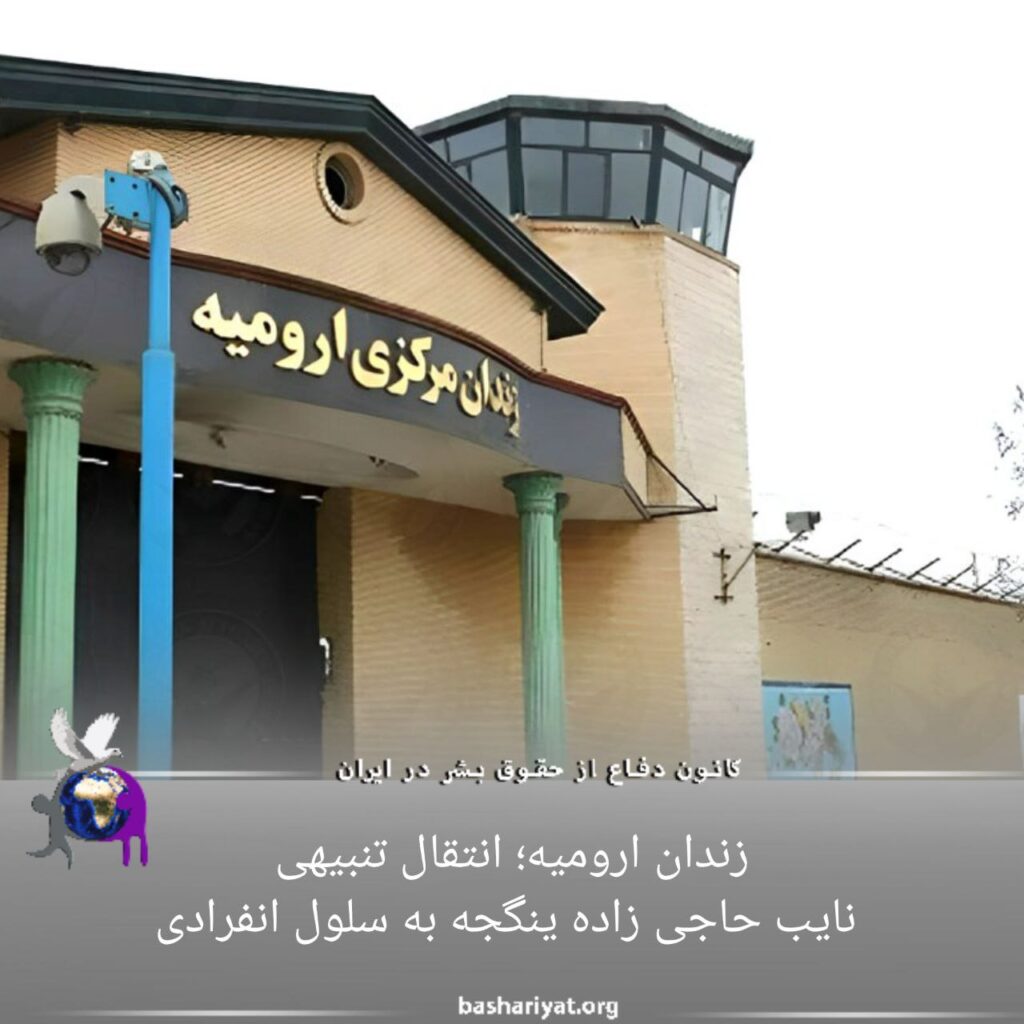 پنجشنبه یازدهم خردادماه ۱۴۰۲، #نایب_حاجی_زاده_ینگجه زندانی سیاسی به سلول انفرادی زندان #ارومیه منتقل شد.یک منبع نزدیک به خانواده این زندانی در این خصوص گفت: “آقای حاجی زاده که دوران محکومیت خود را در خوابگاه ۱-۲ در کنار زندانیان متهم به قتل سپری میکند، روز جاری به صورت تنبیهی به سلول انفرادی این زندان منتقل شد. این اقدام به دلیل اعتراض آقای حاجی زاده نسبت به عدم رعایت اصل تفکیک جرایم صورت گرفته است.