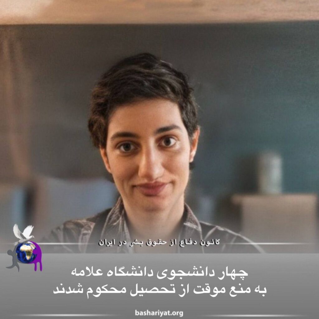 بر اساس ابلاغیه کمیته انضباطی دانشجویان، حکم محرومیت از تحصیل زینب کیامنفرد، #علی_اسماعیل_فراهانی، #ساغر_رحیمی_شاد و #علیرضا_کاظمی_مقدم که پیشتر تعلیق شده بودند به اجرا در آمد.