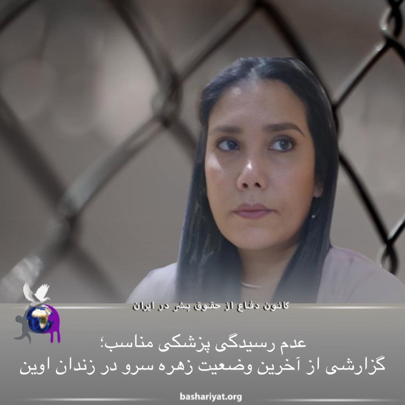 #زهره_سرو، زندانی سیاسی دوران محکومیت خود را در زندان اوین سپری میکند. وی علیرغم حال نامساعد جسمی، از دریافت رسیدگی پزشکی مناسب، محروم مانده است.