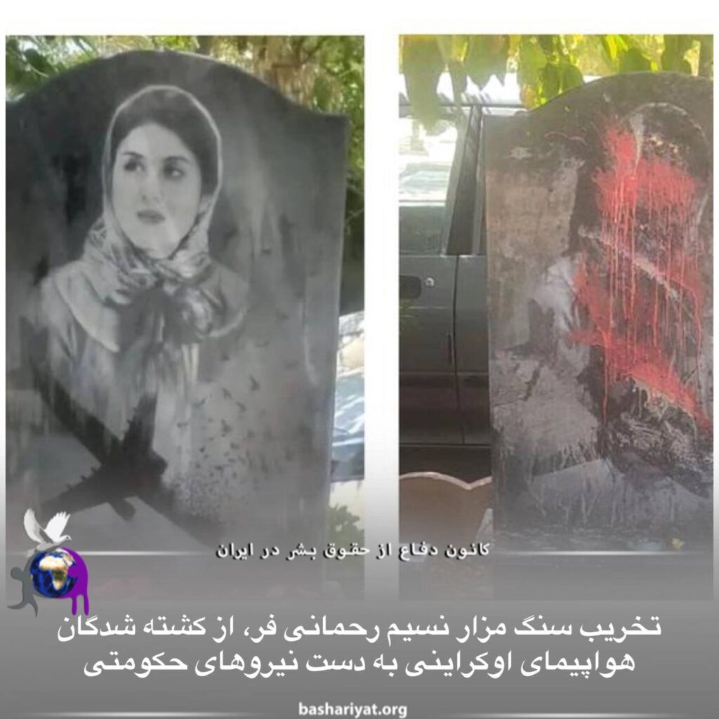 این تصاویر نشان میدهد افرادی روی سنگ مزار #نسیم_رحمانیفر، از کشتهشدگان هواپیمای اوکراینی، در بهشت زهرا رنگ پاشیدهاند.