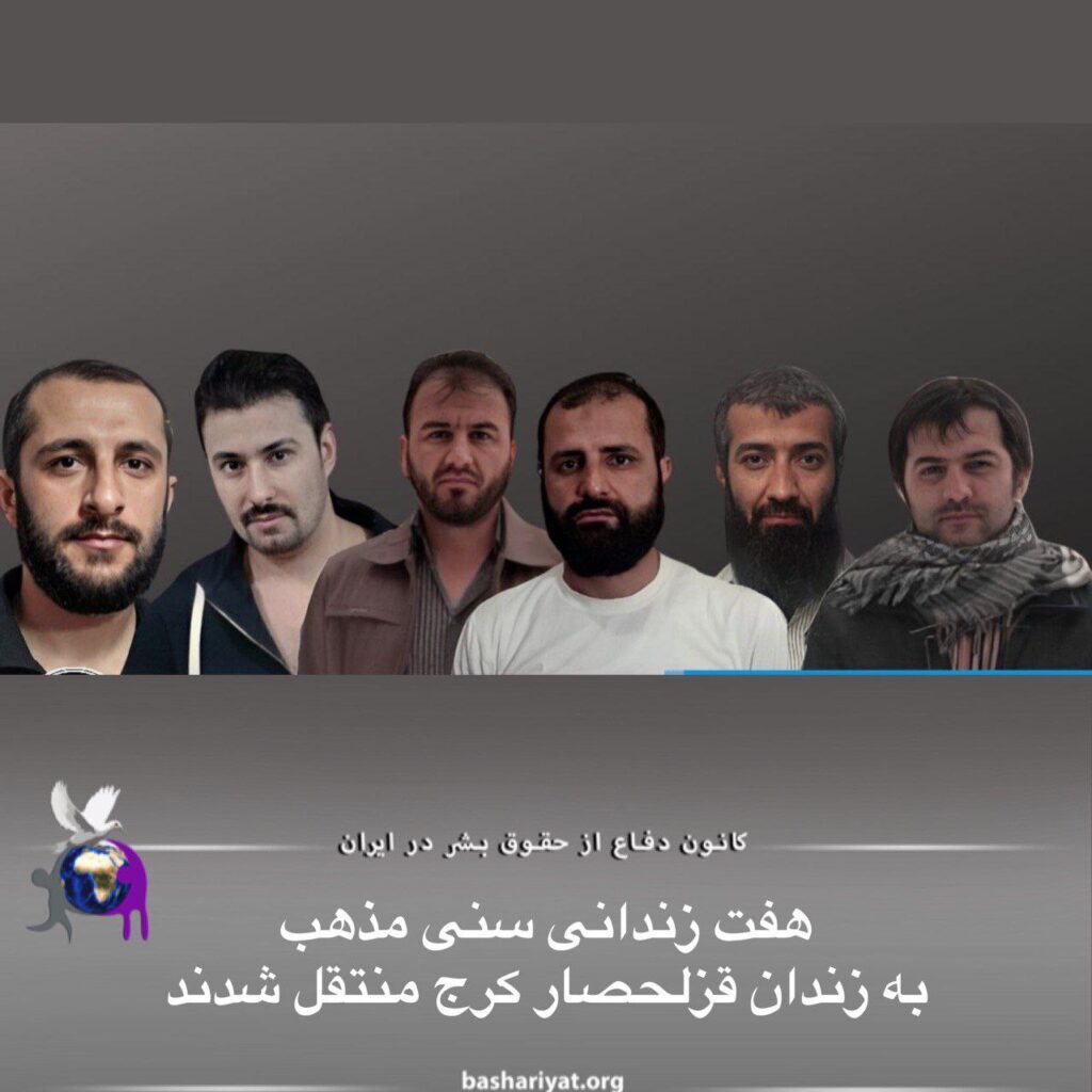 ادامه انتقال زندانیان زندان رجایی شهر کرج، روز سه شنبه دهم مردادماه، #سیدقاسم_آبسته، #سید_داوود_عبداللهی، #ایوب_کریمی، #انور_خضری، #خسرو_بشارت، #کامران_شیخه و #فرهاد_سلیمی زندانیان سنی مذهب به زندان قزلحصار کرج منتقل شدند.