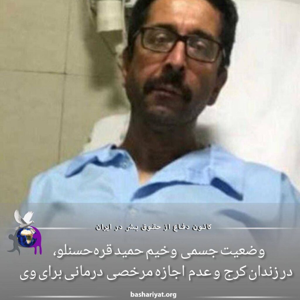 #حمید_قرهحسنلو روز ۳۱ مرداد با خانواده تماس گرفته و از حال خود خبر داده است. او گفته است که پزشکان زندان گفتهاند که نیاز به مرخصی درمانی دارد اما با مرخصی او موافقت نشده است. او دچار خونریزی روده شده و همچنین مشکل قلبی دارد. چند بار دچار حمله قلبی شده و آنژیوگرافی شده است.