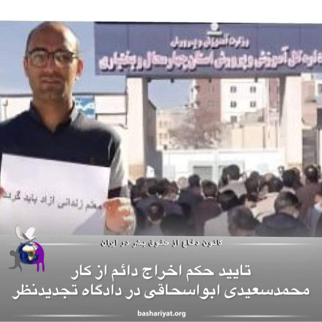 هیات تخلفات وزارتخانه آموزش و پرورش حکم انفصال دائم و اخراج آموزگار و هنرمند #لردگانی را عینا تایید نموده است.آقای #محمد_سعیدی_ابواسحاقی به مواردی از جمله: طرفداری و فعالیت به نفع گروههای معاند، اقدام برای تکریم زنده نگه داشتن جریان اغتشاشات،سرکشی به خانوادههای دادخواه، زیر سؤال بردن نحوهی برخورد با اغتشاشگران و اسطورهسازی از آنان، تهیهی تصویر، مطلب و فیلم از فعالیتهای مذکور با استفادهی ابزاری از موسیقی، هنر و احساسات و بازنشر آن در فضای مجازی متهم شده است. گفته میشود که پس از شورای تامین استان و نهاد های حکومتی، بیشترین کسی که در اخراج وی نقش داشته مدیر کل آموزش و پرورش #چهارمحال_بختیاری بوده است.