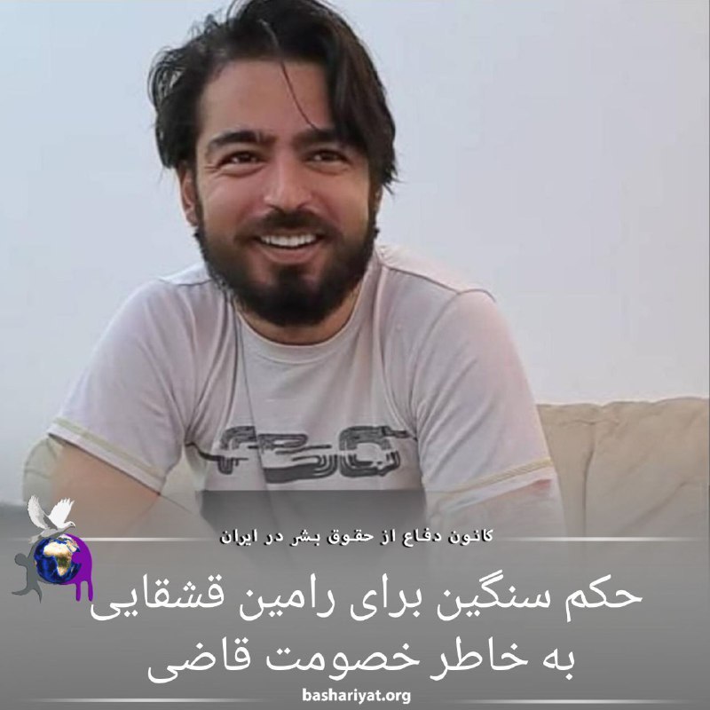 #رامین_قشقایی که در جریان انقلاب زن زندگی آزادی در تاریخ ۲۱ اسفند سال گذشته با یورش نیروهای حکومتی به منزلش دستگیر شد، حالا توسط شعبه یک دادگاه انقلاب #قزوین به پنج سال حبس به خاطر اجتماع و تبانی علیه نظام و دو سال به خاطر تبلیغ علیه نظام و همچنین دو سال تبعید به نیک شهر در استان #سیستان_و_بلوچستان محکوم شده است.گفته شده است که قاضی پرونده در جلسه دادگاه با توهینهای زیاد و تهدید اقدام به صدور رای کرده است. خصومت قاضی با رامین قشقایی به حدی بود که به جای میانگین حداقل رای برای اجتماع و تبانی که دو سال است ، با دلایل واهی، اشد مجازات را برای او تعیین کرده است.