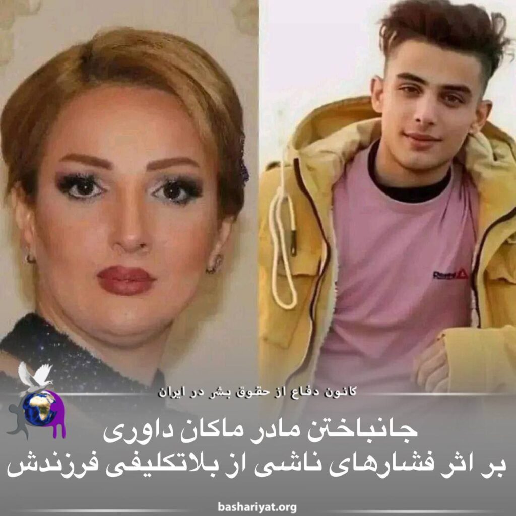 مادر ماکان_داوری جوان ۱۹ ساله ای که ماه ها در زندان است، فوت کرد