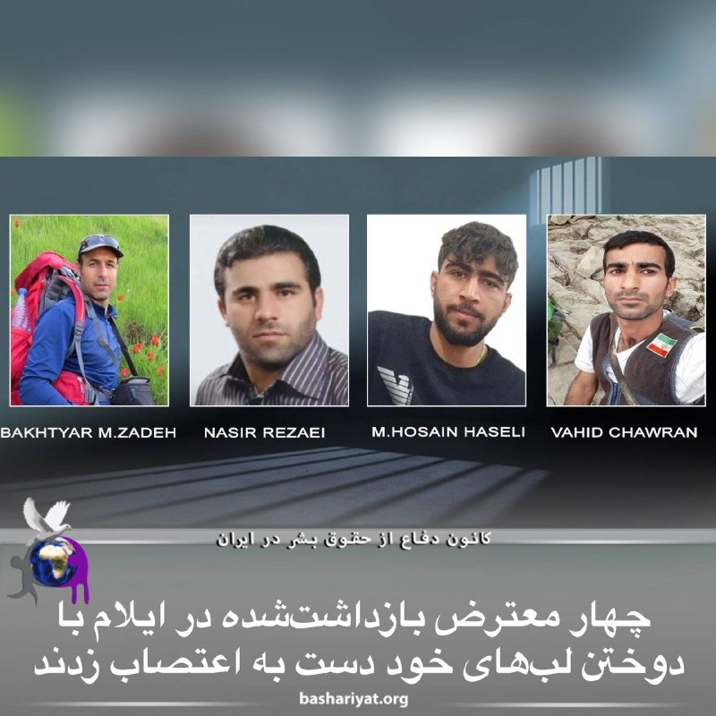 #وحید_چاوران، #ناصر_رضایی و #محمد_حسین_حاصلی، اهل آبدانان و دکتر #بختیار_محمدزادە، اهل درەشهر، بازداشت‌شدگان کُرد در اعتراض به وضعیت نگهداری خود و وخامت حال وحید چاوران، در بازداشتگاە مرکزی ایلام با دوختن لب‌هایشان دست به اعتصاب غذا زدند.