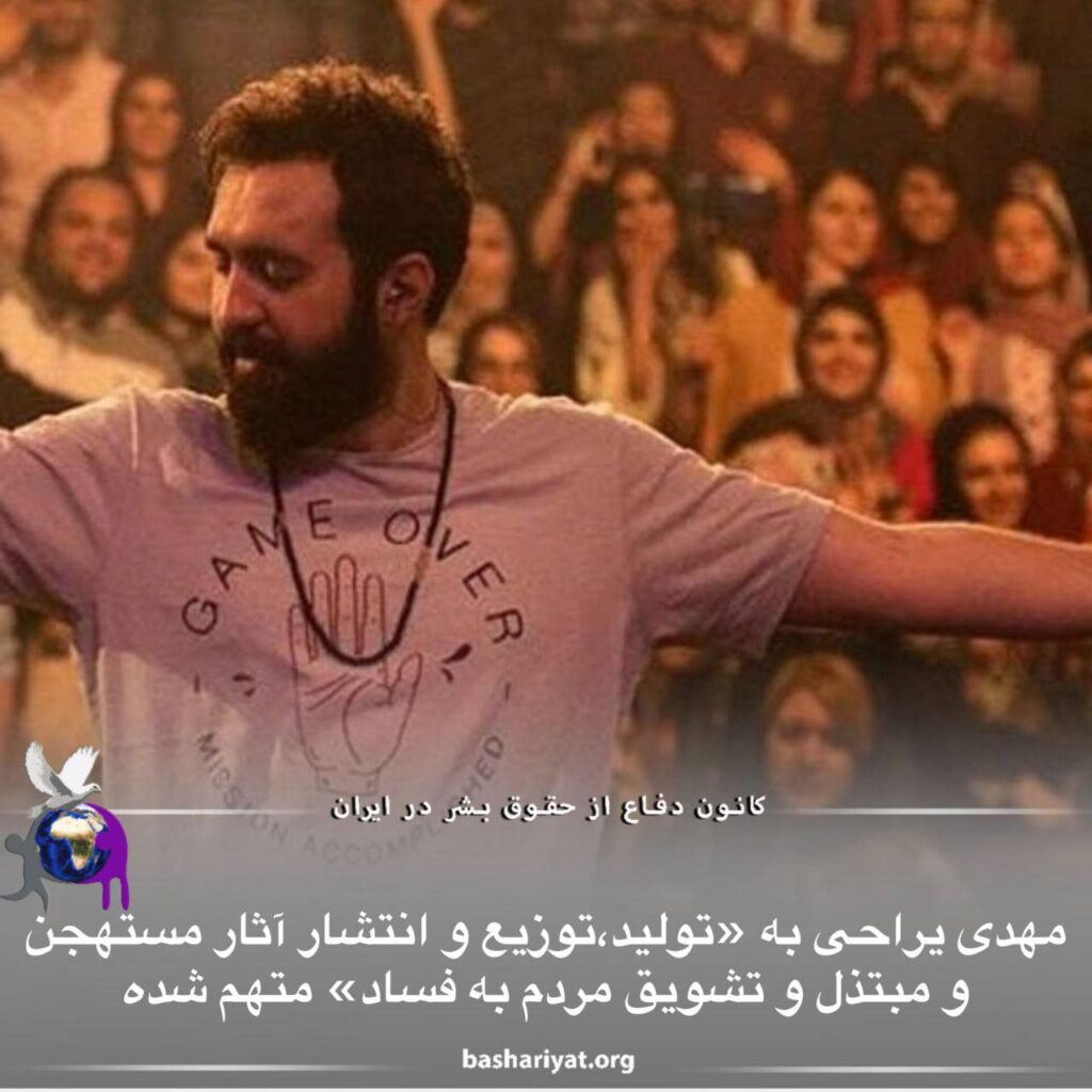 #مهدی_یراحی، هنرمندی که با قرار بازداشت موقت در زندان اوین به سر میبرد، به «تولید، ارسال، توزیع و انتشار آثار مستهجن و مبتذل به وسیله سیستمهای رایانهای و مخابراتی و تشویق مردم به فساد و فحشا» و «تبلیغ علیه نظام» متهم شده است.